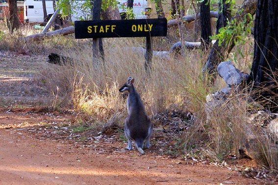 …kaum haben wir unseren Camper für die Nacht abgestellt, lacht uns ein Nachbar schon freundlich von gegenüber an: „G´Day (Good day) mate, how are you going?...and where did you travel today?“…und schon sitzen wir da, beim gemeinsamen Bier, tauschen Reisetipps aus und quatschen über Gott und die Welt. Währenddessen kommt ein kleines wildes Kangaroo angehoppelt und lässt sich unsere Bananen schmecken. Fast überall lernen wir reisende Aussis kennen und haben nette Abende… und oft erhalten wir vor unserer Weiterreise Adressen und Telefonnummern „come and stay with us for some days, when you travel through our home area“…typisch australisch eben!