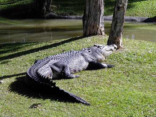 …Nach dem Frühstück verbringen wir den Rest des Tages in Steve Erwins Australia Zoo mit den Croks, Kangaroos, Emus, Koalas, Snakes, Tiger etc. Der Meister (in Deutschland als verrückter TV-Krokodil-Jäger bekannt) ist leider nicht persönlich da, doch die Krokodil-und Tigershow ist auch mit seinen Kollegen spannend.