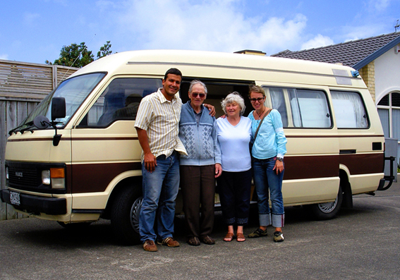 Der Wagen ist mit 8.500 Dollar gelistet (wir wollten eigentlich nur 5000 ausgeben) doch Wolley meint, der sei ein guter Deal. Er greift auch gleich selbst zum Telefon und ruft beim Anbieter an. Als Wolley auflegt ist er, ob der guten Nachrichten richtig aufgekratzt (der Wagen sei in gutem Zustand und habe viele Extras, die in der Zeitung gar nicht aufgeführt wurden): „Fahrt da mal schnell hin und schaut Euch den Wagen an, ich bin mir ziemlich sicher, das wird Euer neuer Campervan!“. Und so verabschieden wir uns sehr dankbar von Wolley und machen uns direkt auf den Weg nach Süden ins 80Km entfernte Waiuku. Die Fahrt dauert über eine Stunde und als wir ankommen ist es bereits stockdunkel. Für neuseeländische Verhältnisse sehr spät für einen abendlichen Besuch – Don und Virginia (beide jeweils fast 80 Jahre alt) empfangen uns dennoch sehr freundlich.