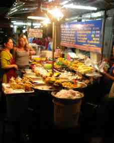 Die thailändische Küche ist für unseren Geschmack eine der besten, die es gibt. Das Essen ist so vielfältig und geschmackvoll, dass man sich an den Garküchen oder in den Restaurants nur schwer für ein Gericht entscheiden kann. Und so kommt es schon mal vor, dass man mehrere Gerichte ausprobiert. Mein Favorit ist ein Nachtisch: Sticky rice mit Mango oder Papaya, fast genauso gut wie die Palatschinken meiner Mutter. Metins Favoriten sind alle Speisen mit Kokosmilch, dazu zählt das Green oder Red Chicken Curry. Die Zubereitung von Thai Food geht schnell und ist nicht sehr aufwändig. Davon habe ich mich selbst in einem Kochkurs auf Phi Phi Island vor knapp 2 Jahren überzeugen können. Zu Hause in Deutschland wird’s beim Nachkochen auf einem Elektroherd jedoch nicht ganz so knackig, wie im Wok auf einem Gasherd. Für alle Strabucks Fans sei noch erwähnt, dass wir 24 Starbucks Coffee Shops auf der Bangkok Karte gezählt haben!!! Da fühlt man sich doch gleich wie zu Hause! Und es ist sooo billig…