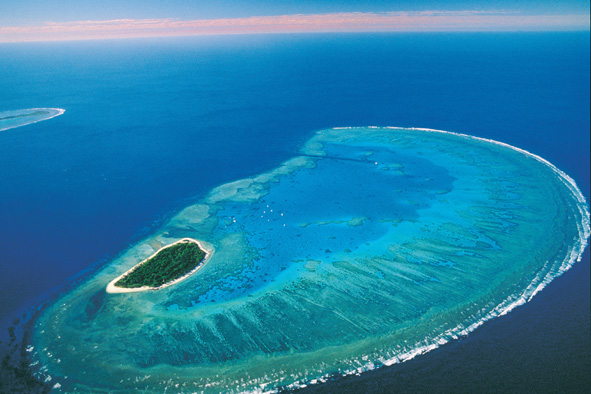 1770 & Lady Musgrave Island Nach 2 Wochen erreichen wir am frühen Abend schließlich den kleinen Ort 1770, der nach Captain Cooks dortiger Landung im Jahr 1770 benannt wurde. Wir gehen früh schlafen, denn am nächsten Morgen geht’s früh aufs Boot zur Lady Musgrave Island; Tauchen am südlichsten Korallenriff des Great Barrier-Reefs, 60 Km von der Küste entfernt. Schon beim Gang aufs Boot sind wir sehr gespannt und voller Vorfreude – unser erster Trip zum Great Barrier Reef. Bei der Ausfahrt aus dem Hafen weißt uns der Skipper zudem auf die Möglichkeit hin, Wale anzutreffen, was unsere Vorfreude nochmals steigert. Doch dann kommt alles anders als geplant. Schon kurz nachdem wir das seichte Hafenbecken verlassen, segeln wir gegen 2m bis 4m hohe Wellen an und die „nette Kreuzfahrt“ verwandelt sich schnell in eine wilde Achterbahnfahrt. Es dauert keine weitere 15 Minuten bis die ersten Passagiere nach den K-Tüten schnappen und schon bald darauf ist die halbe Belegschaft „krank“. Während Dali das alles gar nicht verstehen kann, weil sie einfach nie seekrank wird, habe ich mich bereits in die hinterste Ecke des Schiffs-Hecks verkrochen und gehe ebenfalls im 20-Minutentakt die „Fische füttern“. Die Fahrt will einfach kein Ende nehmen und die „Patienten“ an Board würden wohl allesamt am liebsten über Board springen…zu den Walen oder, noch besser, direkt zu den Haien…aber auf jeden Fall runter von diesem schwankenden Kahn! Die Crew hat alle Hände voll zu tun! Doch nach zweieinhalb Stunden auf dieser „Würgeroute“ nimmt der Seegang plötzlich ab und am Horizont taucht eine kleine Koralleninsel auf – so kitschig schön wie auf den Postkarten. Und nach weiteren 10 Minuten biegt unser Boot bereits in die geschützte Lagune der LM-Island ein und schüttelt jegliche Schaukelbewegung von sich ab. Welch eine Wohltat!