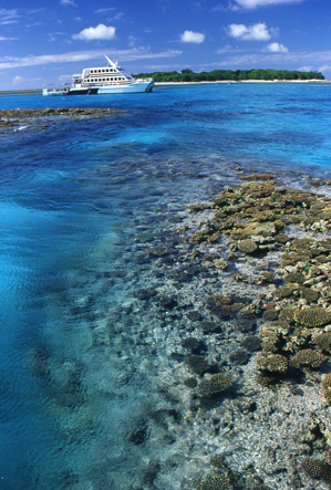 Nach dem Lunch nehmen wir noch an einer sehr interessanten und lehrreichen Glasboden-Bootstour über das Korallenriff teil, bei der das Zusammenleben der unterschiedlichen Lebewesen am Riff sehr anschaulich erklärt wird. Und dann geht’s auch schon bald wieder zurück…doch zwischen uns und dem „rettenden“ Festland liegen noch die gleichen 60KM Seeweg wie am Morgen. Als der Skipper die Motoren anschmeißt, schnappen sich die ersten gleich die K-Tüten, doch wider alle Erwartungen, bleiben auf dem Heimweg alle gesund. Der Seegang ist zwar unverändert hoch, doch diesmal segeln wir „mit den Wellen“, was die Fahrt bedeutend angenehmer macht.