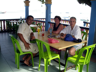 Beim Tauchen lernten wir u.a. das liebenswerte Züricher Familien-Trio Catarina, Piero und ihren Junior Delio kennen (einen weiteren Sohn haben sie noch zu Hause). Sie alle sind erfahrene Taucher, kommen schon seit vielen Jahren regelmässig nach Tioman und kennen die dortigen Riffe wie ihre Westentasche (auf der Insel zählen sie quasi zu den Einheimischen, und wir staunten doch sehr, als sie sich mit diesen sogar in der Landessprache unterhielten). Wir haben eine sehr schöne und interessante Woche mit tollen Tauchgängen und netten Abenden gemeinsam verbracht – beste Grüsse nach Zürich an Euch drei bzw, vier! …Unter Wasser waren ihre Ortskenntnisse einfach Gold wert, weil wir so jeweils als eigene kleine Gruppe tauchen konnten, was unsere Taucherlebnisse sehr viel schöner machte. Übrigens: wer die Gelegenheit bekommt, Catarinas selbst gemachte Gnocchi mit Tomaten- und Thunfischsosse zu kosten, sollte sich diesen Gaumenschmaus auf keinen Fall entgehen lassen – ein Gedicht. Die Taucher unter Euch sollten Pierro zudem unbedingt nach seinem Tauch-Loggbuch fragen – Ausgezeichnet detaillierte Beschreibungen seiner Tauchgänge an allen möglichen Tauchplätzen dieser Welt, mit faszinierend schönen selbst gemalten Skizzen und Bildern. Ein weiteres Highlight ist sein persönliches Tauchvideo von den Galapagos-Inseln…Diese Aufnahmen sind kaum zu toppen!