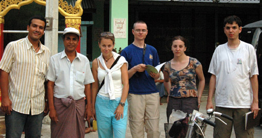 Die Nachricht von den 6 Touristen spricht sich schnell im Dorf herum. Vor allem ein Lehrer hat es sehr eilig, mit seinem Fahrrad zur Pagode zu kommen, um uns kennen zu lernen. Er ist ca. 60 Jahre alt und freut sich sehr, dass er mit uns englisch sprechen kann. Viele Gelegenheiten gibt’s für ihn dort leider nicht. Er unterrichtet Mathematik und Physik und spricht hervorragend englisch (wie einige ältere Menschen, die die britische Kolonialzeit erlebt haben). Er erinnert sich gerne an diese Zeit und erzählt uns sehr offen, wie sich die Lebensbedingungen in Burma (insbesondere seit der Militärdiktatur) drastisch verschlechtert haben. Er kritisiert das Regime ungewöhnlich freizügig und spricht aus, was alle Bürger denken. Vergleichbare Situationen werden wir auf unserer Reise durch Burma noch öfter erleben. Insbesondere den alten, intellektuellen Burmesen ist es ein wichtiges Bedürfnis, die Welt, wo immer möglich, über die hiesigen Missstände aufzuklären. Und dafür sind Touristen natürlich gute Botschafter. Die Geschichten und Informationen, die wir zu hören bekommen, sind so spannend und unfassbar, dass uns niemand zum Zuhören überreden muss. So fragt uns der Lehrer, ob wir Näheres über die beiden terroristischen Bombenanschläge wüssten, die vor einigen Tagen im nur 100 KM entfernten Yangon auf 2 Kaufhäuser verübt und bei denen über 200 Menschen getötet bzw. verletzt wurden. Er selbst habe nur Nachrichtenfragmente via BBC Radio empfangen können, dass er nachts heimlich hörte. Die staatlichen Medien hätten indes gar nichts berichtet, und kaum ein Bürger im Land wisse, dass es diese Anschläge gab. Da wir gerade aus Yangon kommen, sind wir gut informiert und bringen ihn auf den neusten Stand. Daraufhin schildert er uns die burmesische Tsunami-Tragödie. Während die internationalen Medien aus allen Katastrophengebieten berichteten und damit weltweit überlebenswichtige Hilfsaktionen auslösten, blieb Burma abermals außen vor. Obwohl der Tsunami die eigene Küste verwüstete, viele Todesopfer forderte sowie zahlreiche hilflose Menschen zurückließ, wurden ausländische Hilfsangebote seitens der Regierung großen Teils abgelehnt, während staatliche Hilfe ausblieb.