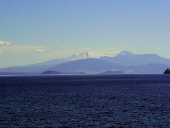 Lake Taupo Nach einigen Tagen in Rotorua, reisen wir durch die idyllischen steppenartigen Buschlandschaften der Hochebene des Tongariro Nationalparks zum Lake Taupo und verbringen dort einige Tage mit schönen Wanderungen zu den Huka Falls etc. sowie mit Faulenzen am idyllischen See-Ufer. Die dortigen Ausblicke auf den schneebedeckten Mount Ruapehu sind atemberaubend.