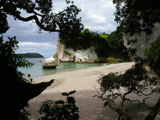 Diese tolle Wanderung beginnt am südlichen Strandende in der Fletscher Bay und führt über mittlere Buschland-Hügel, von denen wir klasse Ausblicke auf den Pazifik und kleine Vorgelagerte Inseln genießen, vorbei an winzigen idyllischen Buchten. Von dort führt der Weg in den Regenwald hinauf (wir haben noch nie solch große Farne gesehen…nicht umsonst das Flaggensymbol Neuseelands) und schließlich wieder abwärts bis zur Cathedral Cove Bay - eine atemberaubende Felsformation in einer traumhaften Lagune mit glasklarem Wasser. Super schön und einmalige Badebedingungen…wenn das Wasser nicht 15 Grad kalt wäre :-).